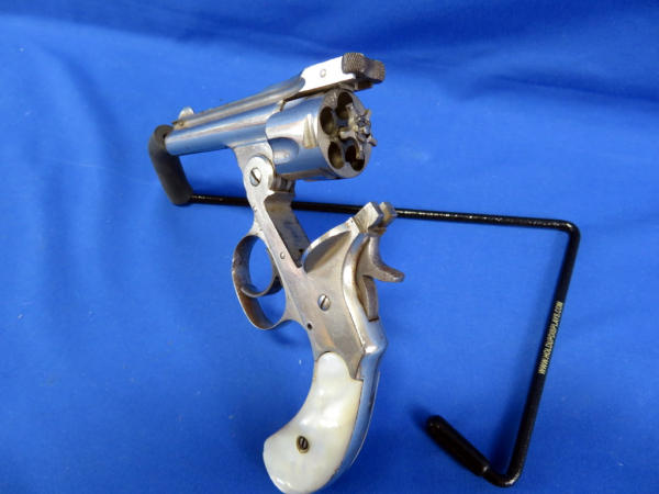 not positive on caliber; 3" Nickel Barrel; finish is nice; imitation mother of pearl grip; 5-shot; made in USA; SN#16521
