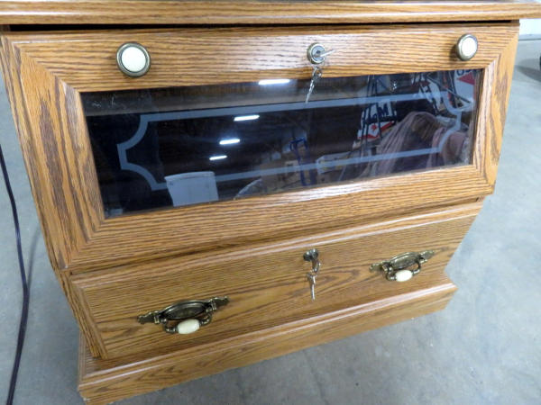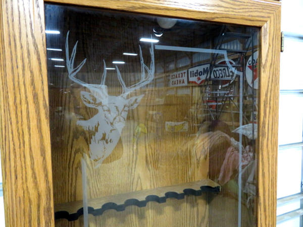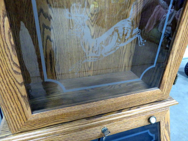 lights, keys, Deer frosted glass door; nice shape; 76"Tall x 16"deep x 26" long; NO SHIPPING