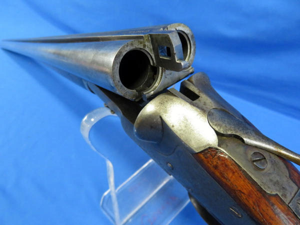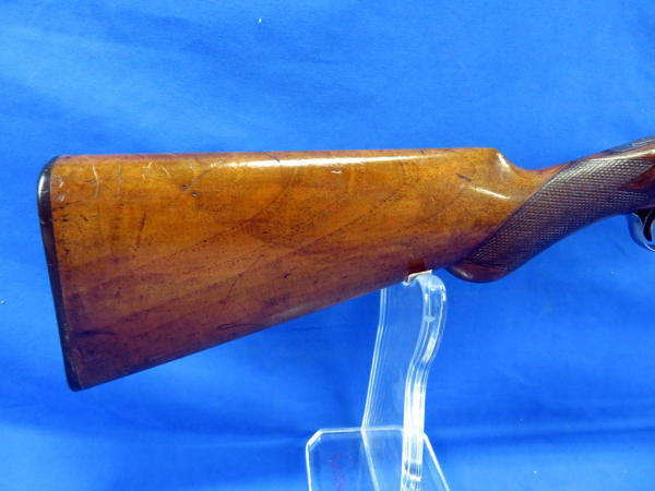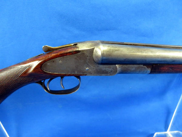 30" BBL; bluing pretty thin; has been repaired in front of trigger guard; easy break action; two triggers; made in USA; both FC; SN#120081