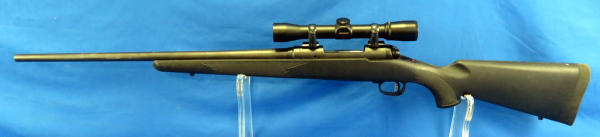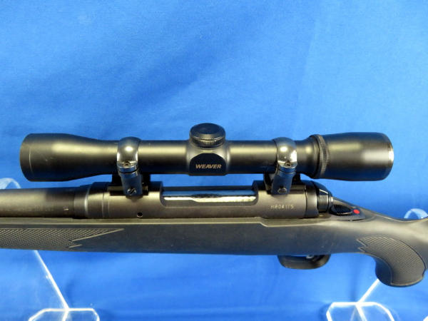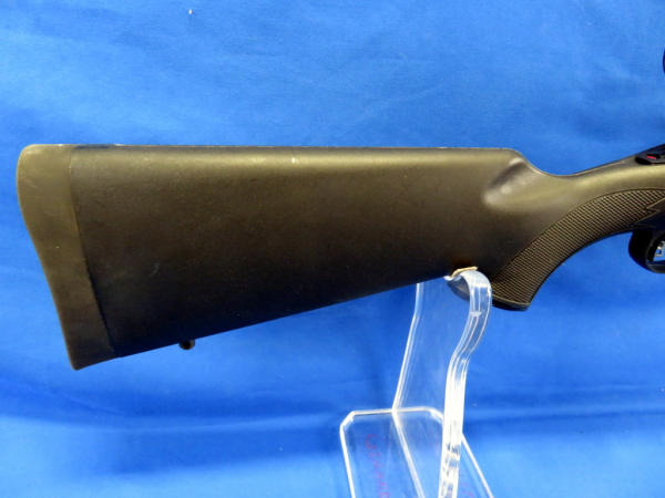 like new condition; smooth action; 22" BBL; Weaver scope; removable magazine; black synthetic stock; nice gun; made in USA; SN#H804175