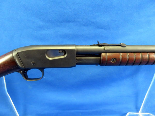 21.5" BBL; has a flat black finish; wood very nice; great looking gun; smooth action; made in USA; SN#372597