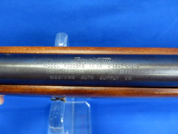 26" BBL; action catches alittle bit; dial choke; wood is very nice; bluing is thin; stamped "Western Auto Supply Co."; 2.75" & 3" chamber; SN#479770