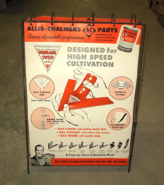 stood on the counter, has 6 large pages with great graphics, stands about 28" tall, first page has some general wear and the top holes are torn through, still a great piece
