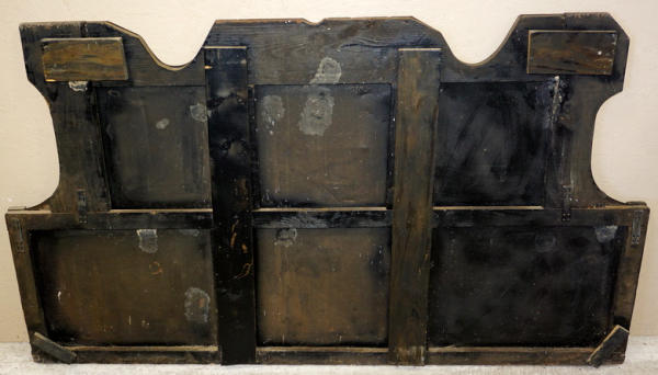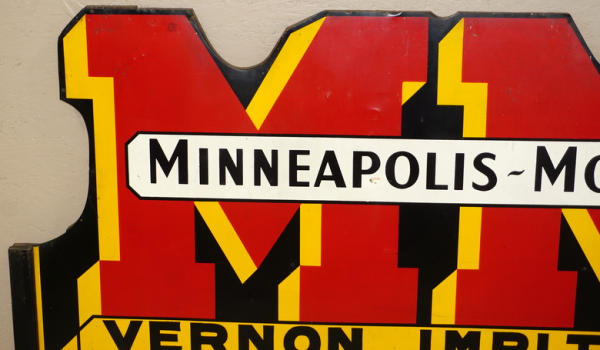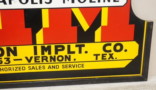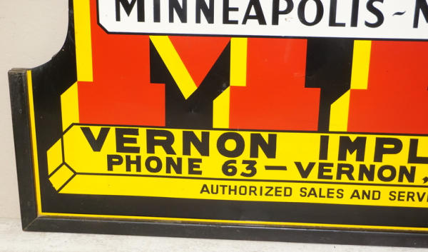 34"x59", wood frame and original wood back with some supports added, super colors, only some light storage wear, overall rates close to 9 condition, best version of this sign we have ever handled!