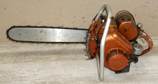 rare original paint chainsaw, 18" bar, motor is loose and has compression, probably run if you really wanted it to, never seen another one