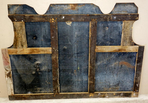 42"x59", Colors are faded out, dealers name was painted over a long time ago, still pretty straight and has the original wood back,