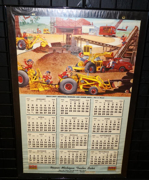 24"x36", in a poster frame, great color and design w/ the elves running the equipment, some general wear, never seen one, has the top & bottom metal bands