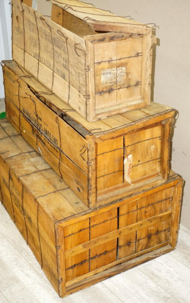 all pretty good originals, largest is 36"x16"x18"; all have some general wear, makes a neat display, sells 3x the money; no shipping