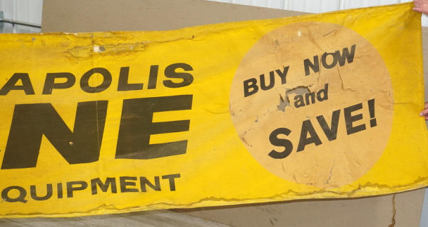 original canvas banner, about 13' long, very heavy damage and wear, as-is condition