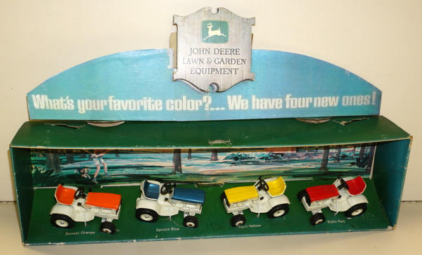 Toys are all mint to near mint condition, some decals on the backs of the seats are flaking, main part of the box is original and rates about 7.5 condition with some fading and wear; the very top center sign is original; the green half-moon marquee is an average reproduction of the original, overall still a very nice and displayable set