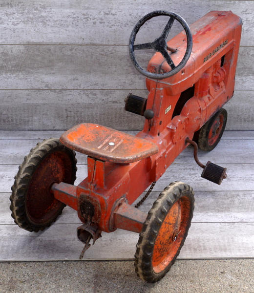 good casting except for the bottom of the hitch cover is broken out, needs new tires & stuff, but a good old pedal tractor