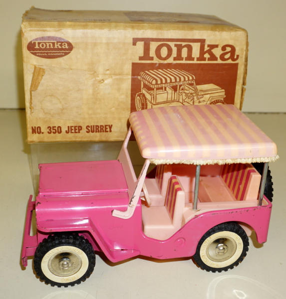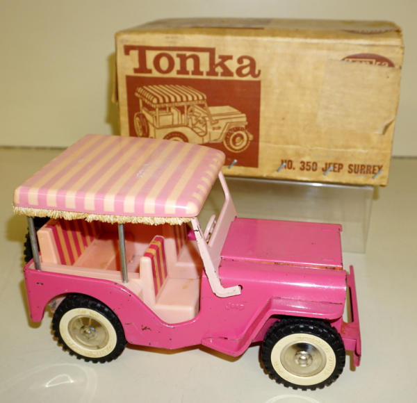 Toy has play wear, rates 85% paint, plastic roof is faded, box is missing and end flap and has fairly heavy wear, rates 7 condition