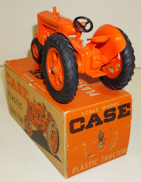 1950's plastic toy, near mint original; Box is complete and square withs some tape on an end flap and a puncture out the top, overall box rates 7.5 condition
