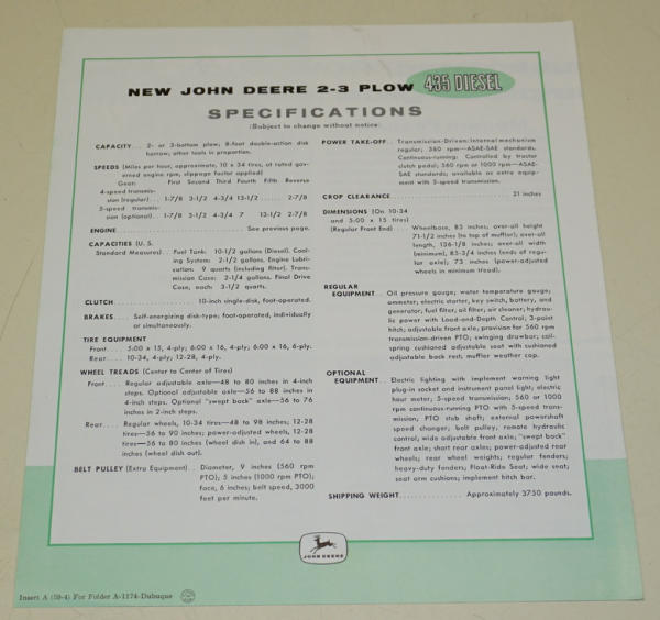 Insert A 59-4 for A-1174, 4-pages, near mint