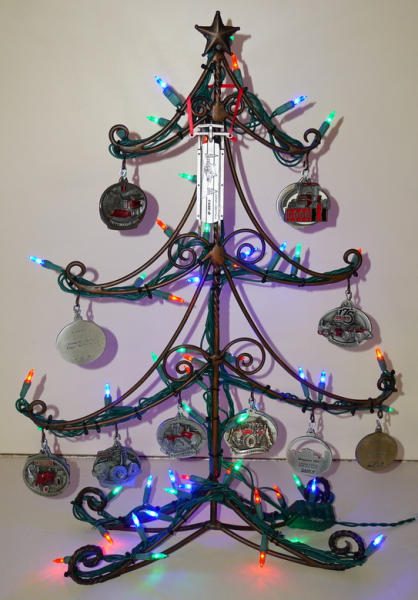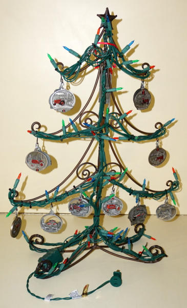looks to be a complete set from the first year to current, all clean and nice, comes with the original pouches and boxes too, all mounted to a metal display tree, sells as a set for one money