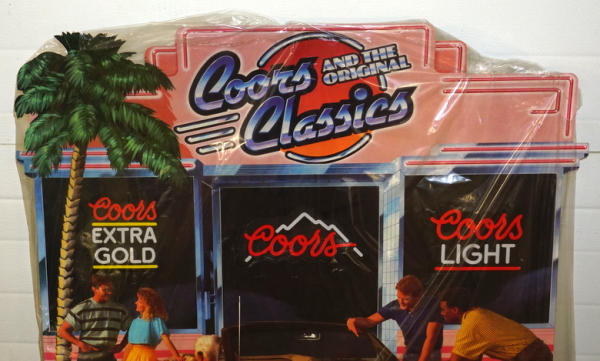 NOS, about 32"x32", the logos light up in the center, never used, still wrapped in the factory plastic