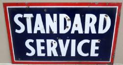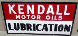 great old sign, super paint, one side is very nice, reverse side has a large scratch, unique piece that would look great in a car museum, 6'x33"