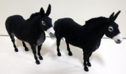 sell as a set; all of the flocked mules/horses are sold "AS IS"; we're not sure of the breed or Breyer No. You be the judge!