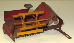 Pressed steel, pretty heavy wear, but a unique foreign made toy, 4.25" wide