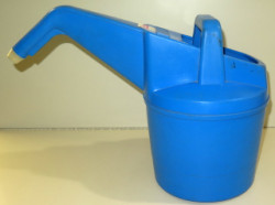 about 2-quart size, paper label is partially torn, don't believe it was ever used