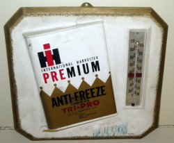 Legs are loose from the stand, originally tack-welded, can easily be fixed, about 6' tall overall, use original, cardboard backing is worn and stained, could be replaced easily enough; one side has the 2 logos, reverse side has "International" w/ Canadian markings