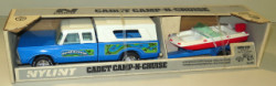neat truck with chains on end gate and full of crates, NIB, 1/34th scale