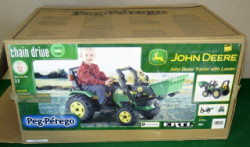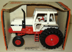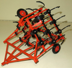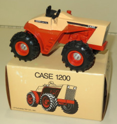 another unique set, about 1/32nd scale, this one has a more generic tractor, Wagon, tandem drag, tandem disc, and unique cylinder plow all shrink wrapped to a flat; no markings on this box, but was found with the previous lot, some soiling to the box and the tabs on the roof are a little beat up