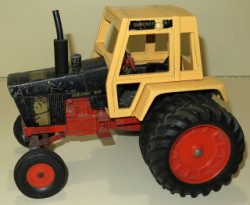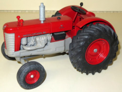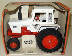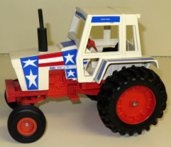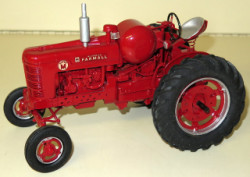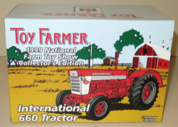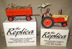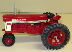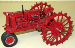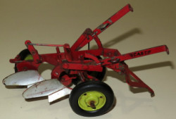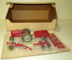 Very cool set, 1/32nd Scale Slik R, plow, Drag in disc with box liner in a closed box; box has a label on the top dated 3-13-59, from Hoerner Boxes of Keokuk, IA; made for the Lee Aluminum Foundry; this was the sample box sent to Lee for approval, very cool, one-of-a kind piece for the Farm Set or MM Collector!