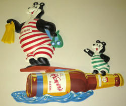 Great sign, thin plastic is in very good condition, about 15"x14", 6-pack is a little discolored for age, overall a pretty nice example of a very scarce sign