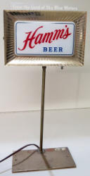 Sign works, great piece, helicopter is 17" long, designed to be mounted to the wall, propeller spins and the parachute with the bears go up and down; condition--Parachute has numerous small cracks and wrinkles, bear also has a crack in eh belly, helicopter has a broken windshield post, prop is good; not perfect, but a very scarce Hamm's motion sign!