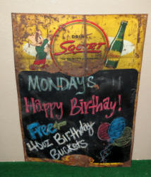 sign has some fading and wear, but not too bad, frame is original too, all to go