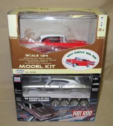 Plastic & wood, no motor, 17" long, light wood with dark floor, nice shape, box is nice with some wear