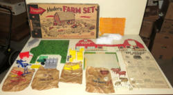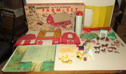 rare 1950's set, cardboard building have never been punched, looks complete, box has some light fading, box measures 23"x14", some tape on the box, but contents are very nice