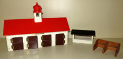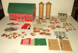 barn is 14"x9" and appears to be repainted, includes fence, feeders and more; Jim Has this marked that it is an FAO Schwartz, but I see no markings