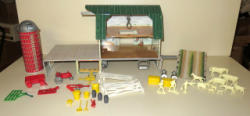 Large Set, has a Silo w/ Conveyor plus the barn and lots of accessories, box is 31"x14" and has some general wear, tape on the corners; toys look to be nice overall