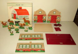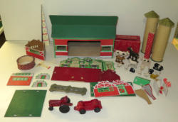Barn is 9"x11", includes a few accessories, some normal wear, nice advertising