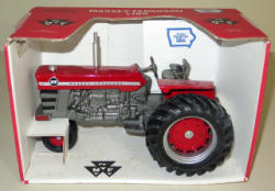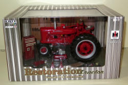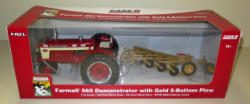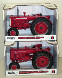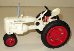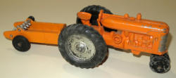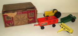 Tractor is marked Wyandotte, but looks like a Ford Jubilee, Implements are tin, tractor is plastic, about 1/32nd scale or maybe a hair larger, box is 9"x7", some wear to the box and toys, neat set for the Ford collector