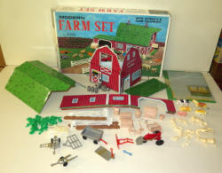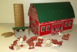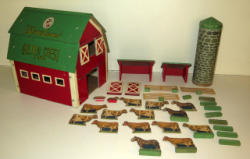 no box, barn is 22"x9", not marked but believe it's a Marx set, some light play wear