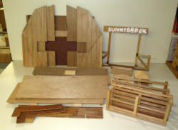 Cardboard play set with wood figures, NIB, box has light wear, contents are nice, box measures 18"x12"