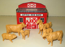 Cardboard Barn box with 7 animals, NIB, mint toys and clean box, box is 8"x5"