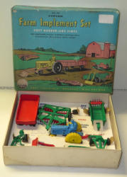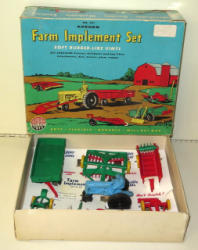 Blue Tractor variation, toys are all near mint with the original liner, box is good with some general wear to the edges and corners, box measures 12"x10"