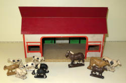 unique little set, barn is only 5" long, animals inside, near mint