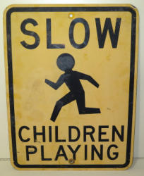 16"x30", heavy aluminum, hand painted, has some flaking and wear, neat old sign