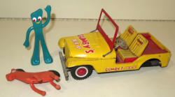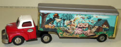 Great piece, issued by Smith-Miller based on the Lucille Ball movie "The Long, Long Trailer"; car has some play wear, not mint, but not bad either; I think the roof might have been repainted; Trailer looks to be all original, trailer is 24" long! Has some general play wear, great piece that seldom comes up for sale