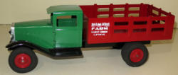 11" long, missing windshield and back axle is loose from the frame, has play wear; not the best condition but a scarce truck