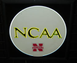 heavy glass face that is lit with neon on the back, 19"x19", Huskers logo is a decal that could be removed if you wanted too