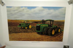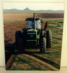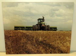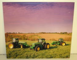 18"x18", mounted on plastic; these pictures were used by JD at Farm shows, expos, and etc. in their booth; some normal wear