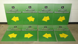 8 signs with stacks, each is about 30"x19", made of corrugated plastic, all to go with original box
