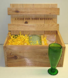 Etched glasses in unique wood crate, 3pc set, near mint, sells as a set