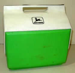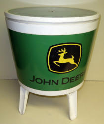 Plastic cooler tub with a pop top that works like an end table, has some light wear, unique